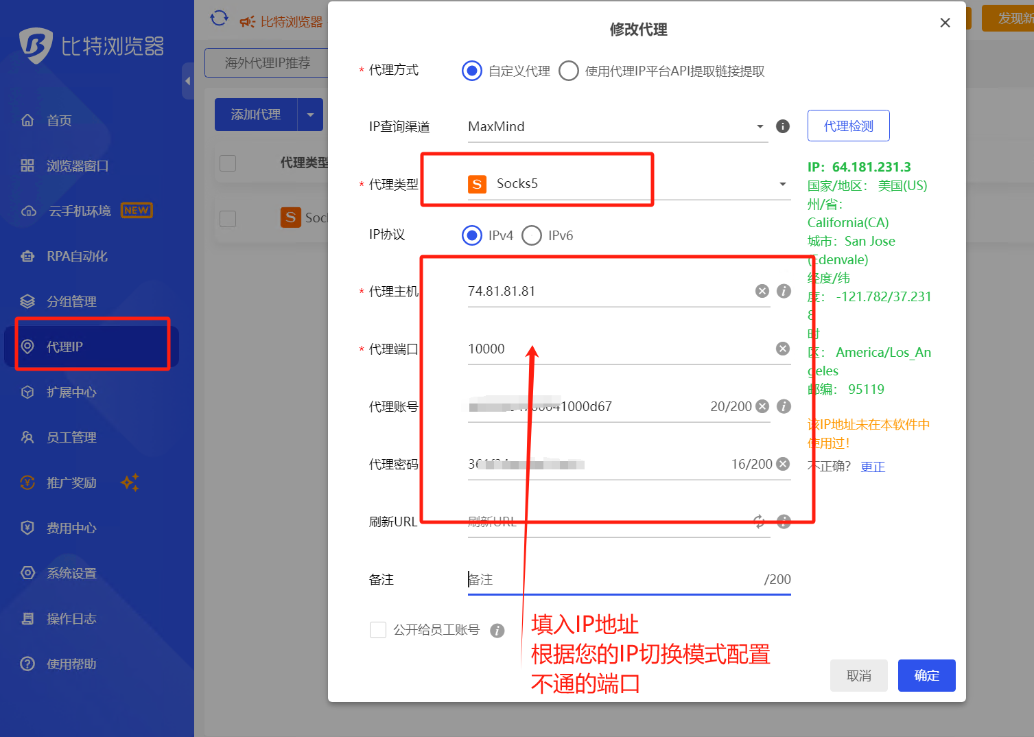 下面以比特浏览器为例,配置 cheapproxy 代理IP: